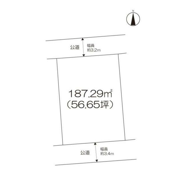 | 土地面積 | 公簿 187.29㎡ | 坪数 | 56.65坪 | 坪単価 | 3.36万円 |